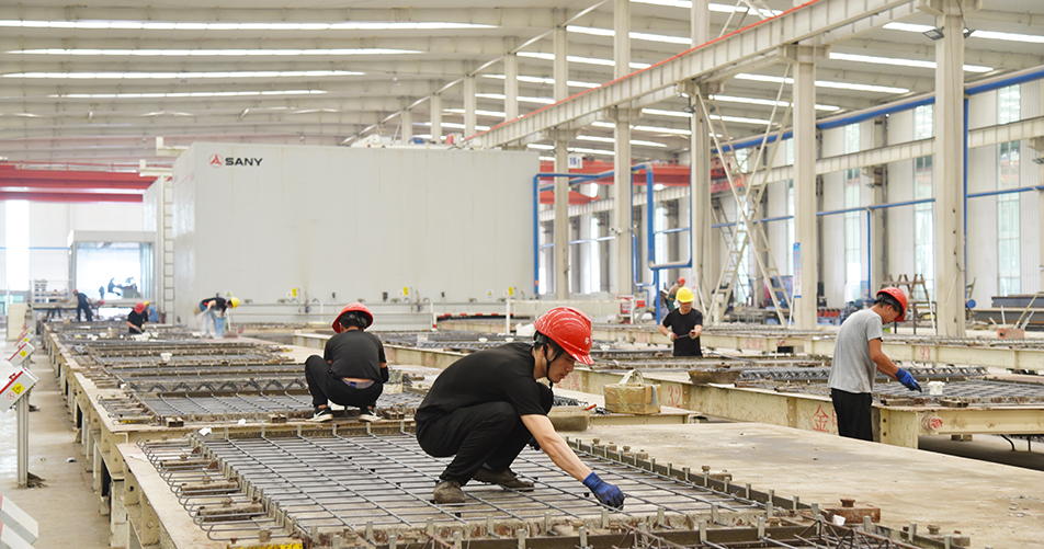 金明寓科技公司严格按照国家级装配式产业基地的标准管理,不断将建筑推向设计标准化、部品生产工厂化、现场施工装配化、结构装修一体化和建造过程信息化,精益求精,追求卓越,如今已发展成高新技术企业,公司生产的PC、ALC产品被评为绿色建材产品。公司采用现代化生产技术,坚持绿色可持续发展理念,致力于打造绿色PC工厂。据了解,PC车间目前拥有2条三一生产线,2条固定线,配套三一搅拌站,年生产量超60000立方米。